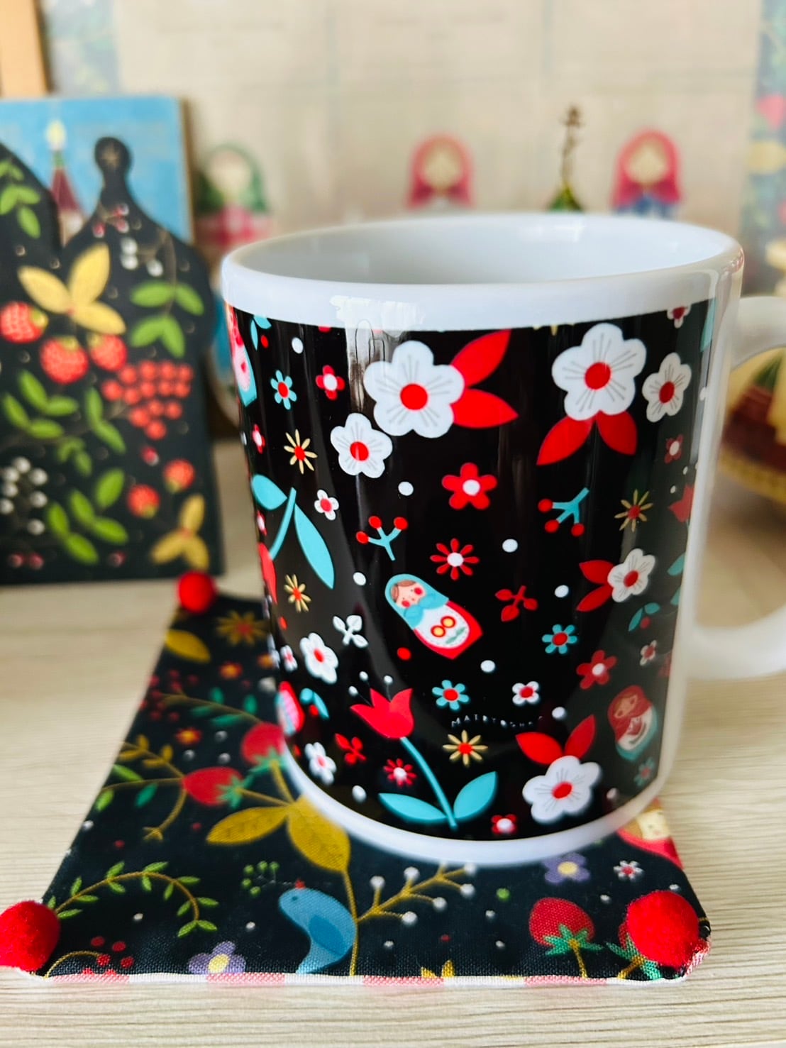 ホフロマ柄がかわいい、たっぷりサイズのマグカップです。